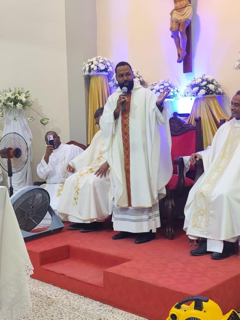 La solemne Eucaristía fue presidida por el Pro-Vicario de Stella Maris, Alejandro Varela, y contó con la presencia de numerosos fieles, representantes de los grupos y ministerios parroquiales, religiosas, sacerdotes invitados, el reverendo diácono permanente de la parroquia, Jacinto Sención Mateo, representantes de varias parroquias hermanas y los padres y familiares del nuevo administrador de la parroquia.
